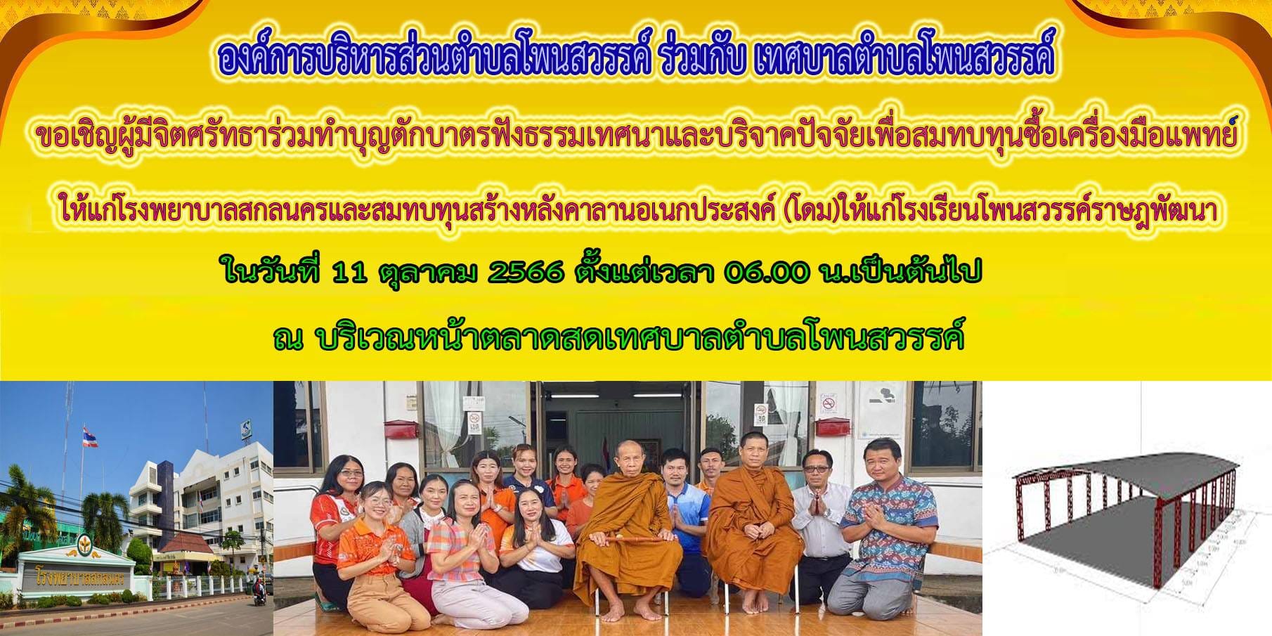 ประชาสัมพันธ์ ขอเชิญผู้มีจิตศรัทธาร่วมทำบุญตักบาตรฟังธรรมเทศนาและบริจาคปัจจัยเพื่อสมทบทุนซื้อเครื่องมือแพทย์ ในวันที่ 11 ตุลาคม 2566
